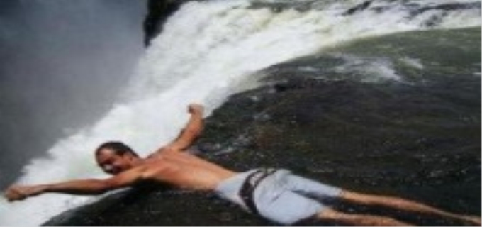魔鬼池处于110米高的维多利亚瀑布的顶部。下面是无底深渊。即使如此,无畏地挑战者依然源源不断。他们在水面上戏水,扒在岸边举着手机拍照,趴在涯边作出飞的姿势。